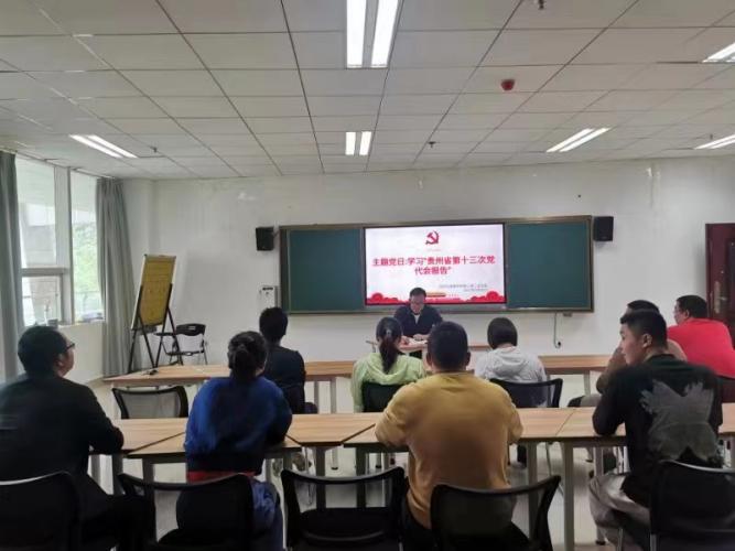 教工第二党支部于5月26日以主题党日形式组织支部全体党员在体育馆三楼棋牌室对中国共产党贵州省第十三次代表大会报告内容进行系统学习。