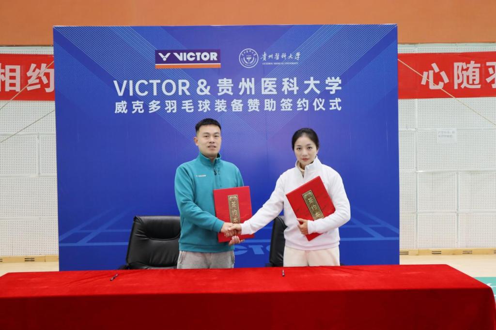 11月20日下午,威克多体育用品有限公司赞助贵州医科大学羽毛球队合作签约仪式在贵州医科大学云漫湖校区举行。bet365娱乐城