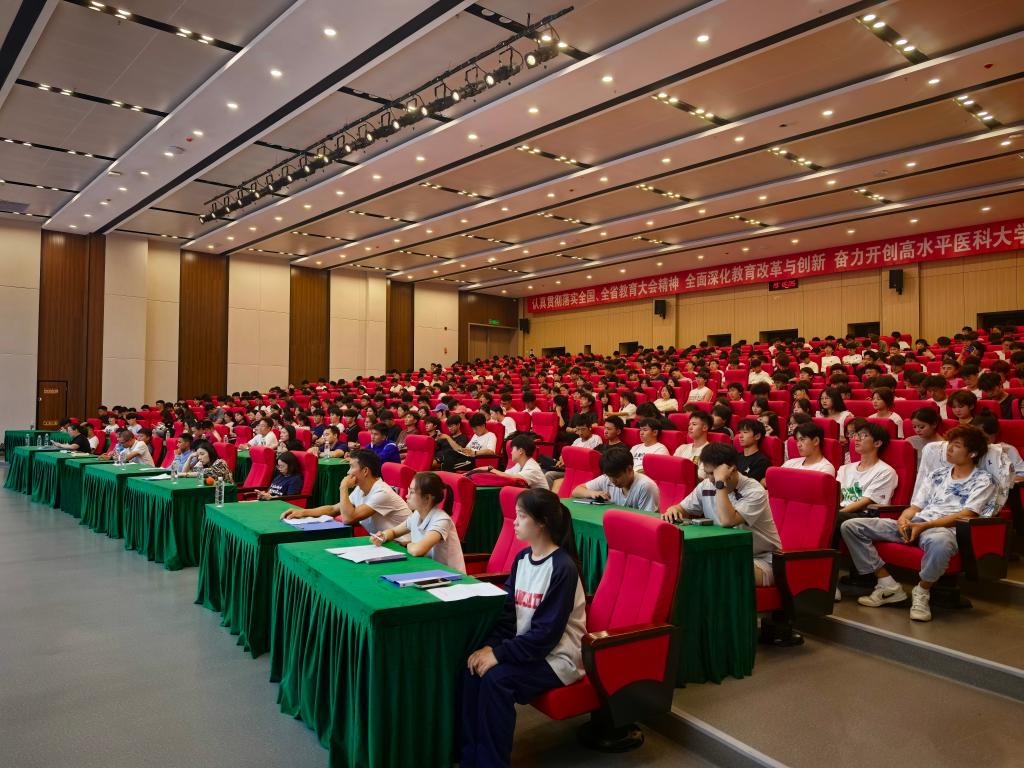 新生代表2025级研究生新生代表邬婧、2025级运动康复本科学生杨舒瑶先后发言。邬婧呼吁全体研究生把“青春小我”融入“强国大我”,在体医融合前沿勇攀科研高峰,让“贵州医大造”成果走向全国。杨舒瑶表示,将秉承“健其体魄、富其学识、美其心灵”的育人理念,努力成为“身体侦探”,用专业守护每一份热爱。