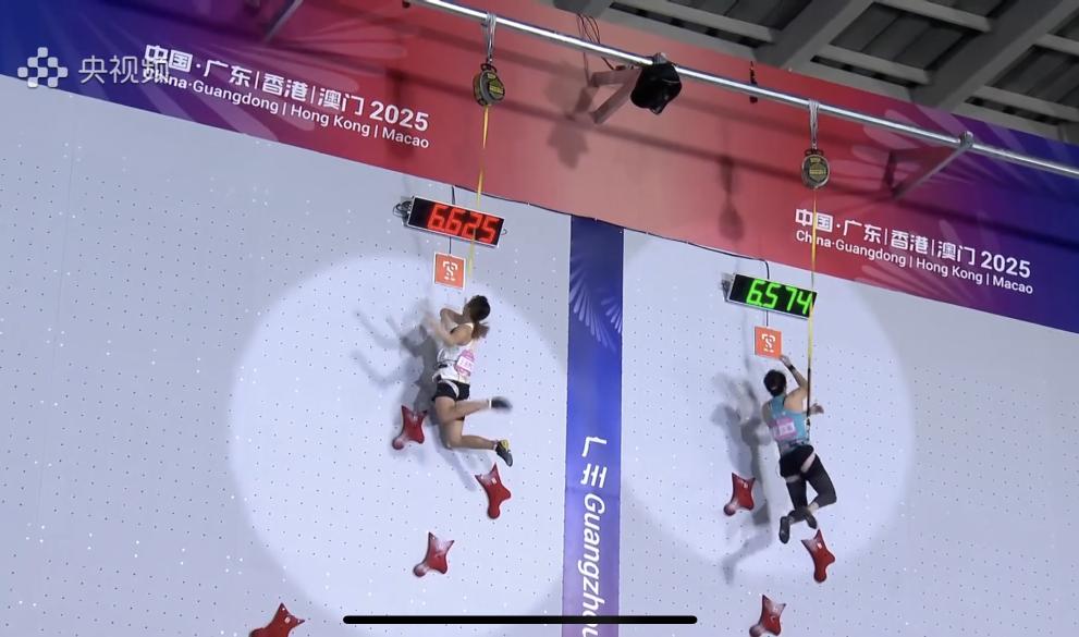 除张少琴外,我校运动训练专业学子在本届全运会攀岩项目中亦有亮眼表现。其中,2024 级学生韩腾蛟、2025级学生赵子谦代表湖北队参赛,2025级学生黄日明代表广西队参赛,2025 级学生范竞月代表重庆队参赛。各位学子在赛场上充分展现了我校体育专业学生的专业素养与竞技精神,凭借扎实的技术功底和顽强的拼搏态度,均在各自组别中取得了不俗成绩,进一步彰显了我校在攀岩项目人才培养上的广度与深度。